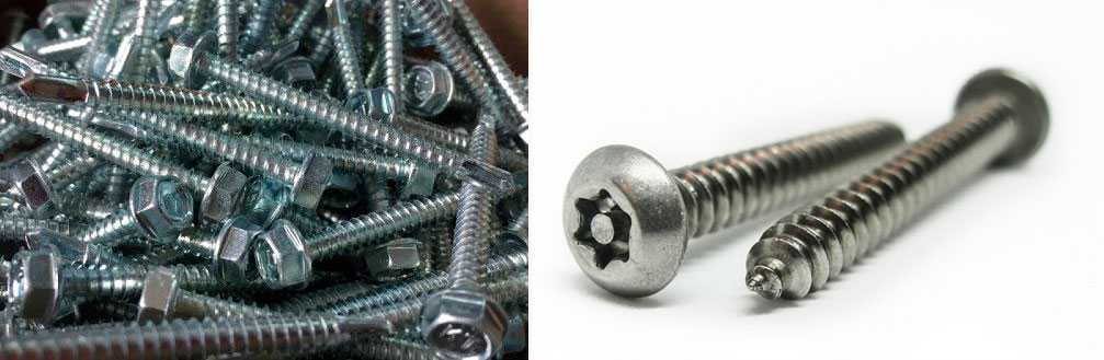 На рынке и в магазинах можно найти большое разнообразие метизов, которые изготавливаются из различных материалов. Если изучить в эту тему, то можно понять, что различаются только внешние технологические покрытия, которые выполняют защитную функцию. Бывают оцинкованные, омедненные или затемнённые модели шурупов.