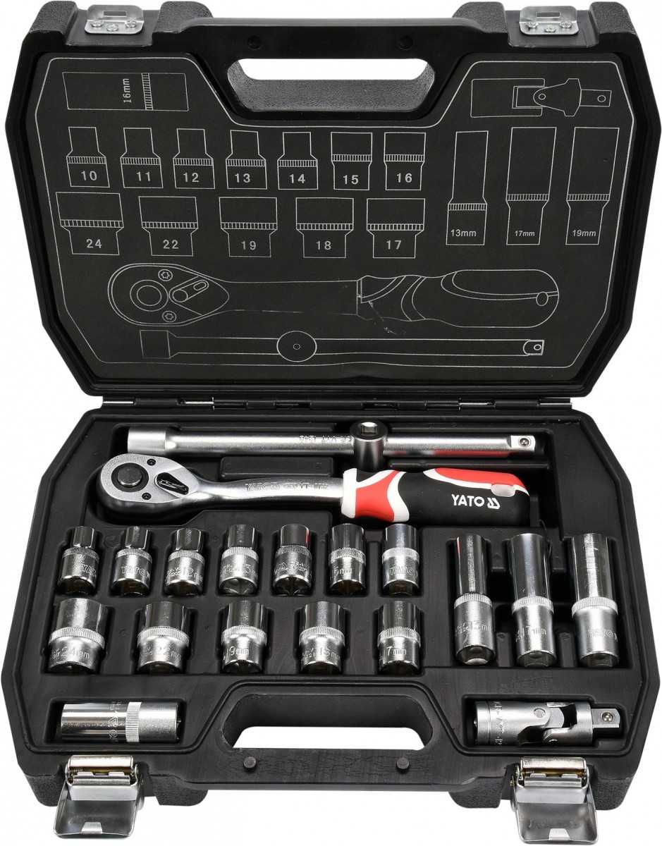 Торцевые трещотки. Торцевые головки представляют собой, по сути, муфтовые ключи. В составе набора поставляются головки с широким разбросом значений, дополнительные биты для отверток, токарные резцы и даже рожковые ключи. Инструментарий снабжается десятисантиметровым удлинителем.