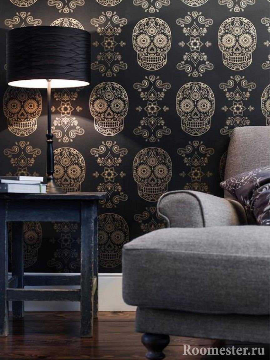 Обои с вензелями гармонично вписываются в классические и современные интерьеры. Особенно богато и респектабельно на черном смотрятся серебристые и золотистые узоры.