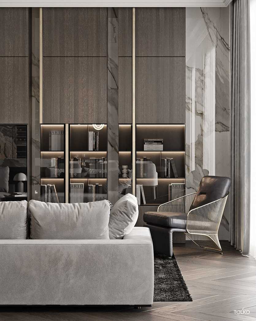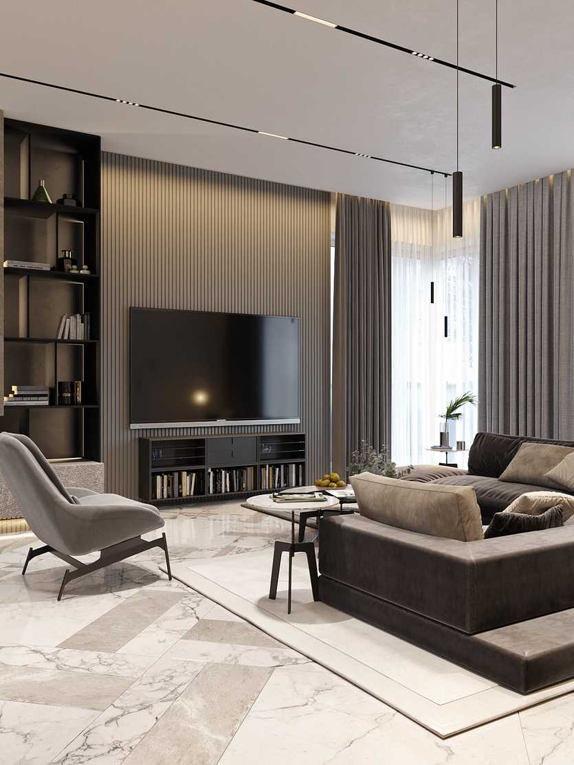 ФОТО: mir-s3-cdn-cf.behance.netПри использовании серо-белых оттенков вы можете выбрать глянцевые поверхности мебели и фактурные ковры