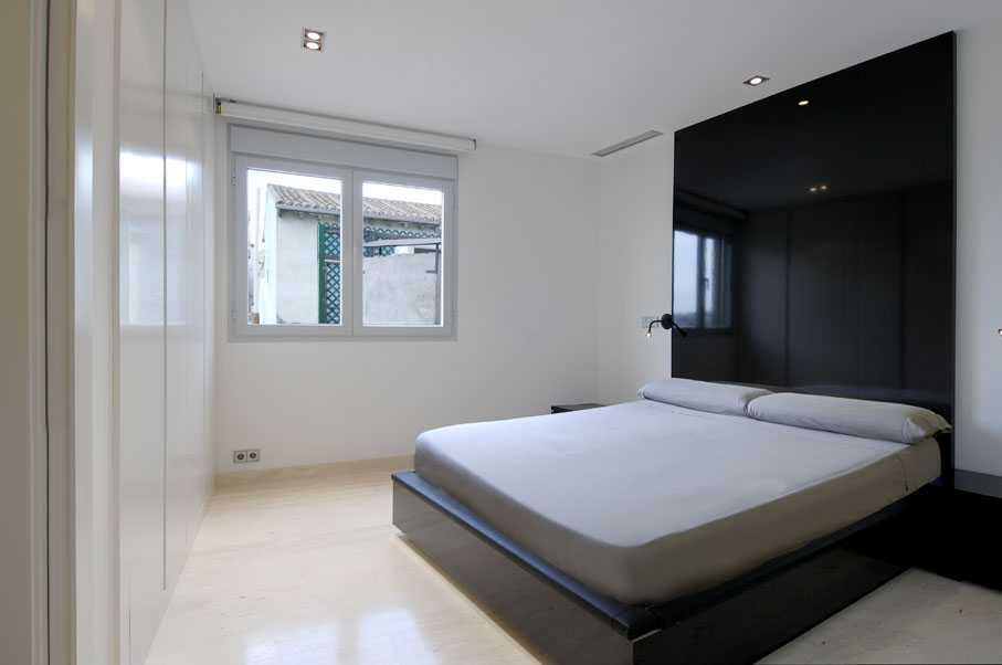 Минимализм — это стиль, в котором убираются границы, и спальня может плавно перетекать в столовое помещение и кухню. В некоторых случаях расширяют даже форму окна, делая его от пола до потолка, тем самым увеличивая пространство и впуская в помещение как можно больше света. Декор окон заключается только в шторах, которые выполнены из легких тканей, таких как лен, органза, шелк или же отсутствуют вовсе. Некоторые дизайнеры отдают предпочтение римским шторам и ролл-шторам.