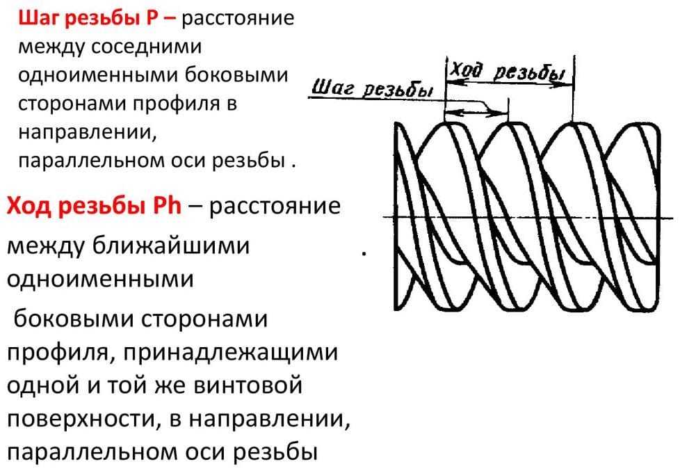 Шаг резьбы — это значение дистанции между вершинами ближайших двух вершин профиля. Шаг бывает крупный или основной и мелкий (он может быть не один). Длиной резьбы является полный размер области нарезания профиля на детали.