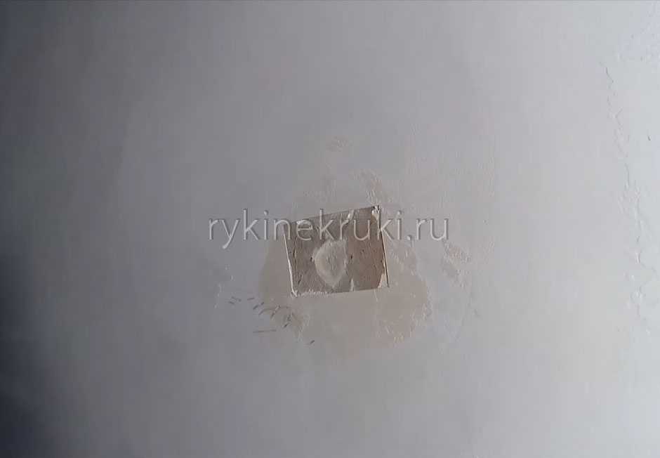 Важно! Заплатку можно сделать и квадратной с помощью ножа. Тогда и дыре в потолке придают квадратную форму