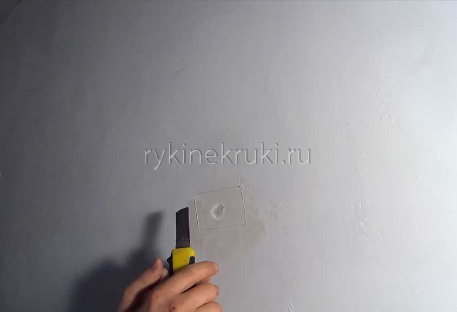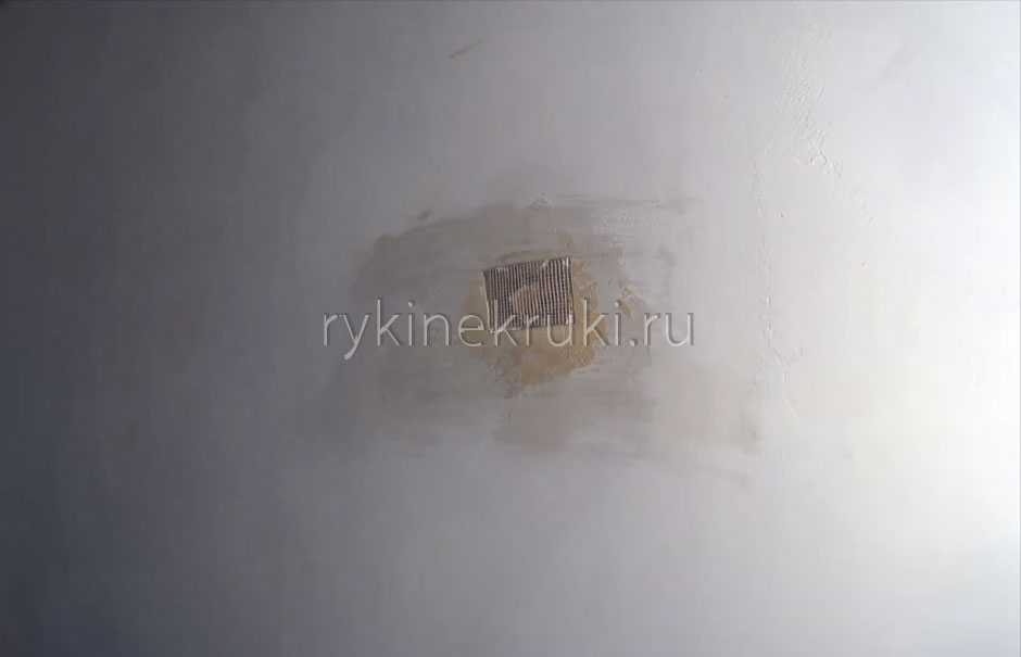 - После высыхания клея отверстие заделывают шпатлевкой. При необходимости можно проклеить серпянкой.