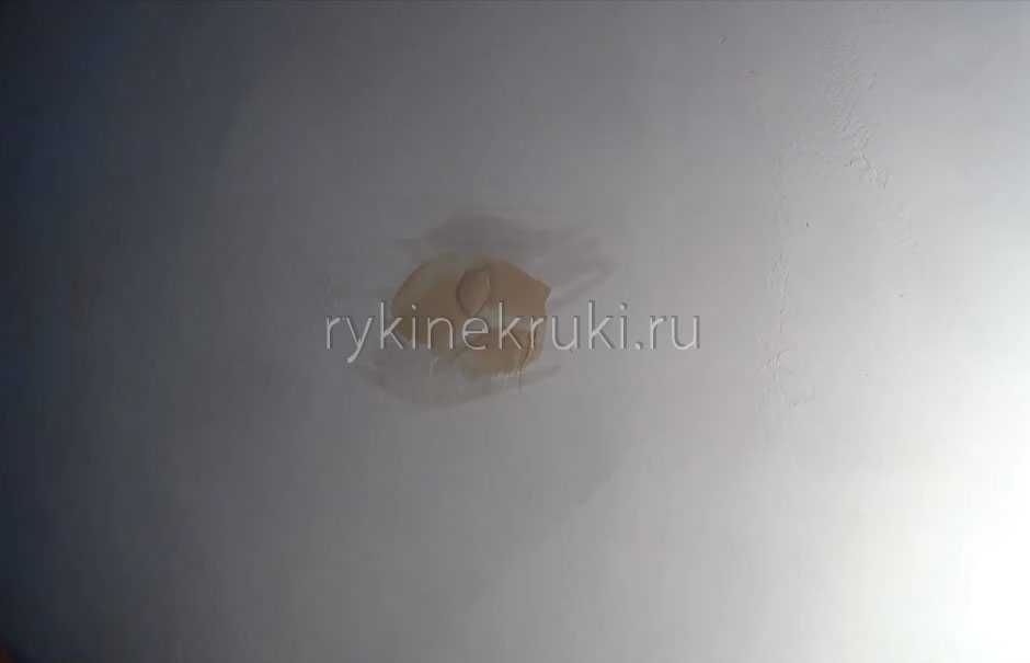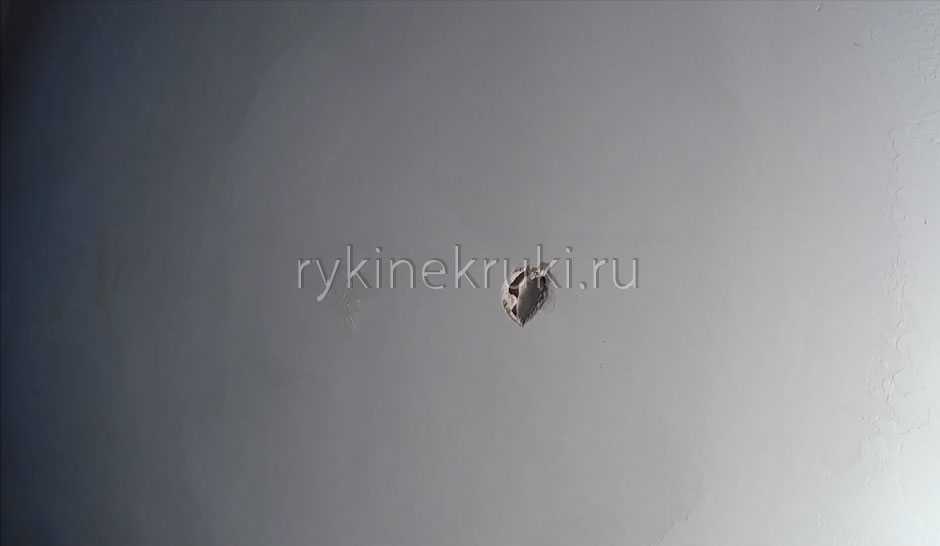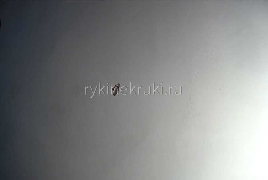 - В отверстие вставляют кусок пенопласта или картона, предварительно смазав его клеем. При этом края пробки должны находиться на одном уровне с краями потолка.