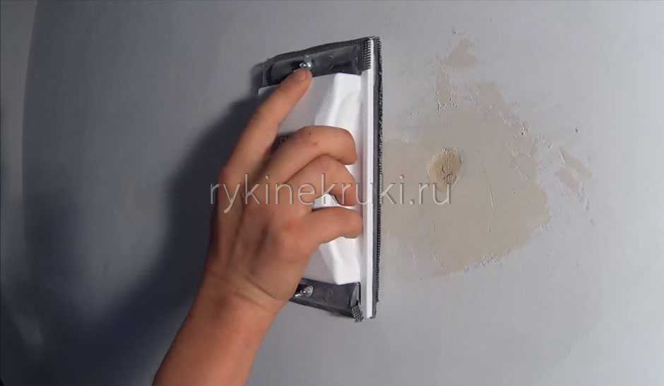 - Подождать до полного высыхания состава и затереть стену наждачной бумагой.