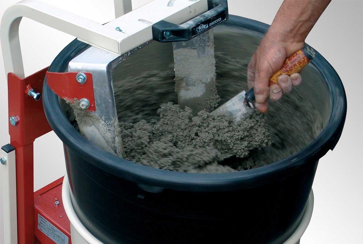 Мешают раствор около четырех минут дрелью с насадкой-миксером на небольшой скорости, стараясь не задеть дно и стенки. Потом дают смеси дозреть около 5 минут и мешают снова.