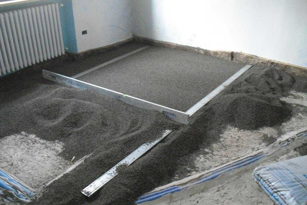Первый способ сегодня используется редко. Он был разработан в то время, когда для защиты пола от влаги использовался рубероид. Для его наклеивания делали слой бетонной подготовки (черновой пол).