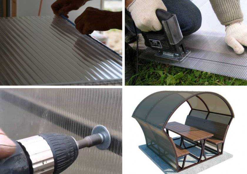 Для беседок достаточно будет листов толщиной 4-6 мм. Нагрузки на поверхность тут будут небольшими, а кроме того, такой поликарбонат обладает достаточной гибкостью – его можно моделировать, не прибегая к нагреву.