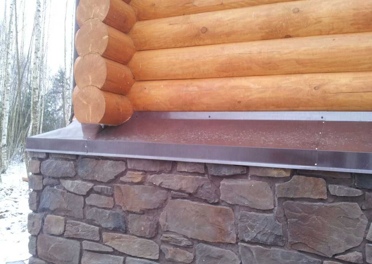Поскольку сторонников установки сливной доски становится все меньше, альтернативой выступает монтаж отливов из других материалов. Установка металлических и пластиковых отливов на цоколь фундамента деревянного дома практически ничем не отличается.