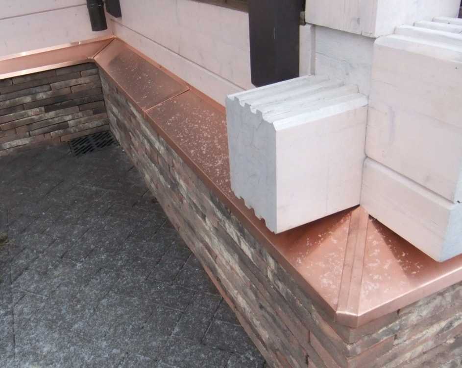 - медные планки в качестве отлива. Однако они не пользуются широкой популярностью. Поскольку требовательны к уходу;