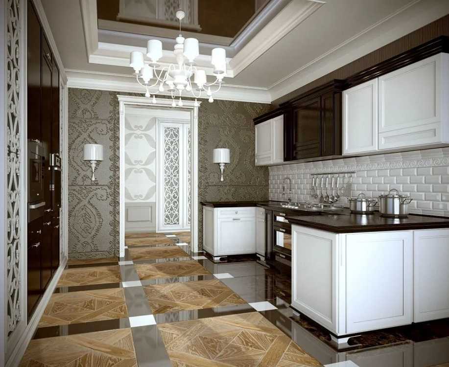 Для этого стиля уместно применение светлых нейтральных расцветок. Белая, бежевая, светло-серая или голубая плитка – наиболее подходящий материал для классического кухонного фартука. Для этой зоны используется не только однотонная облицовка. Можно приобрести изделия с золотистыми или серебристыми рисунками. Если в помещении есть мебель с патиной, хорошим способом дополнить интерьер станет облицовка плиткой с кракелюрной (под старину) поверхностью. Для классического стиля следует остановиться на стандартном способе укладки плитки. Штабельная или диагональная технология будет смотреться слишком современно рядом с изысканными аристократическими аксессуарами.