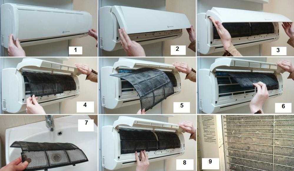 Пошаговые действия по очистке фильтров внутреннего блока.