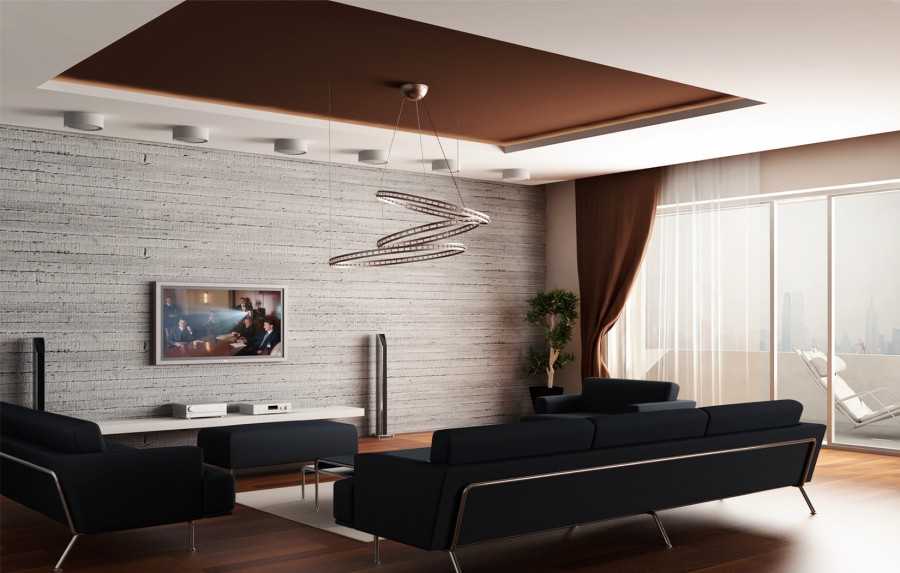 Однотонные варианты могут предусматривать двухуровневое исполнение. При гармонично подобранном освещении такой вариант подходит для комнат, в которых произведено зонирование, например, студий.
