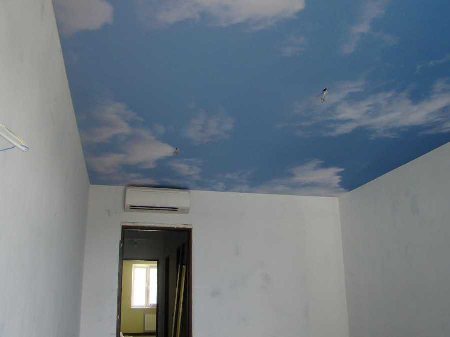 Исполнить такую модель несложно. Ведь тканевые полотна имеют ширину от 2,1 до 5,1 метра, поэтому рисунок нанесен на него сплошным образом (без швов). Проблема может возникнуть, если ширина потолка и полотна не совпадает, но это необходимо учесть при выборе покупки.