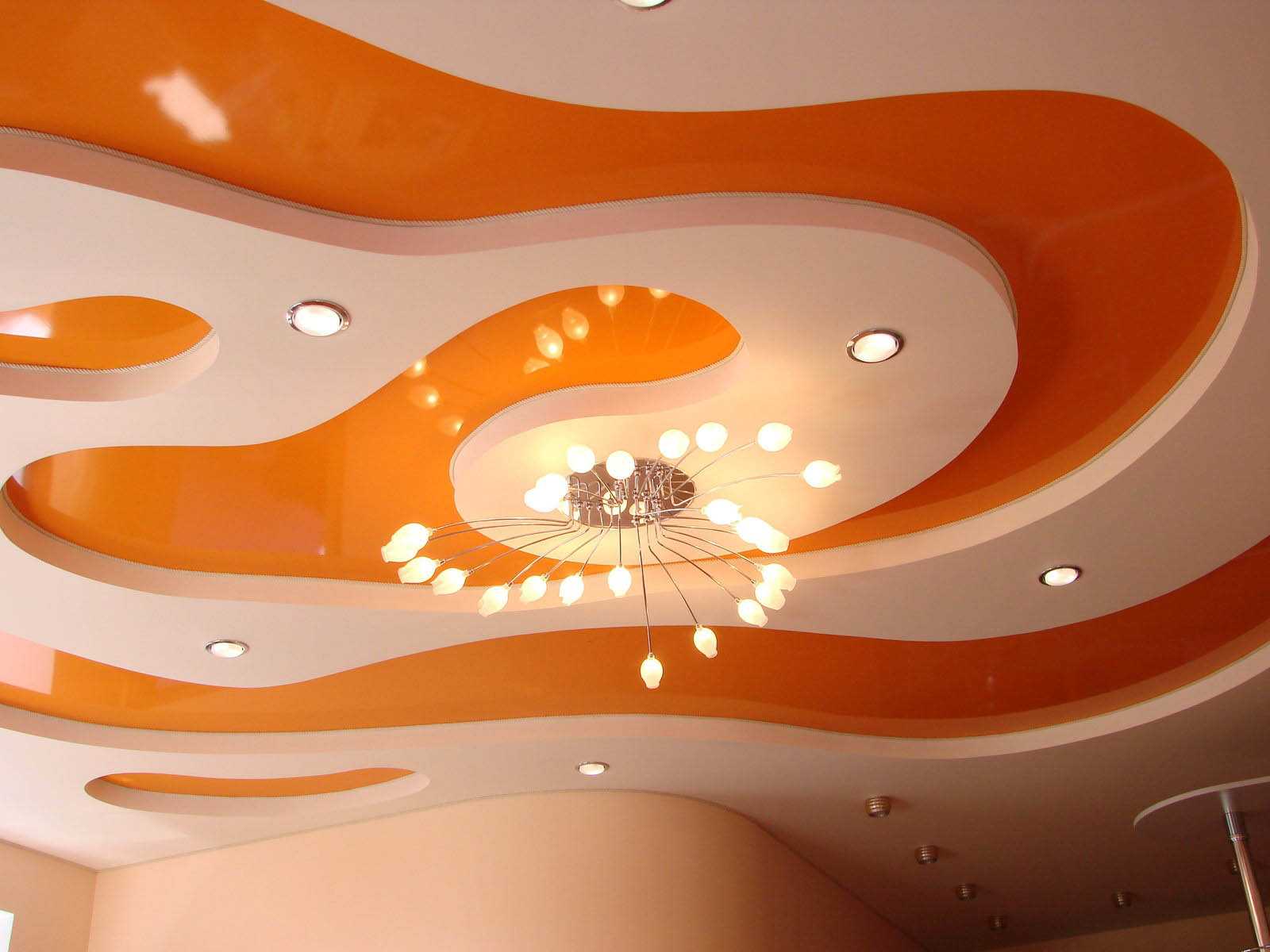 Понятно, что кромка или внешний угол несущей рамы не обязательно должны быть прямыми, очень часто верхний уровень двухуровневого потолка изготавливают в виде сложной кривой, могут также применяться округлые дугообразные каркасы.