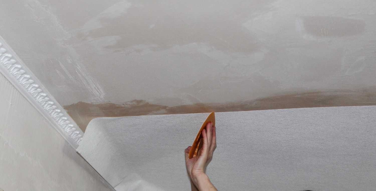 - тщательно удалять излишки клея и воздушные пузыри, образующиеся под обоями в процессе приклеивания к потолку.