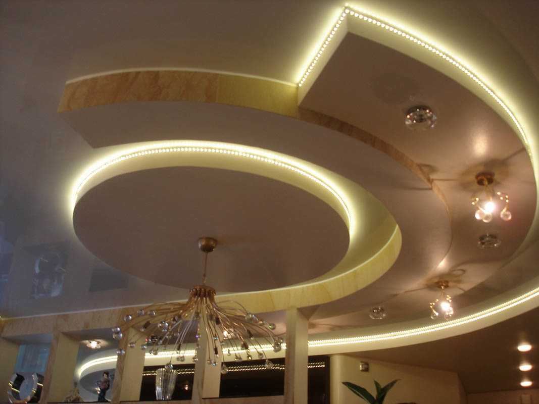 В этом виде сочетается практичность материала и роскошь результата. Такие изделия будут уместны в гостиницах, салонах красоты, ресторанах. Великолепным будет полупрозрачный потолок из нескольких уровней, где органично переплетутся разнообразие цветов и форм. Большим спросом пользуется потолок, создающий неповторимый образ звездного неба.