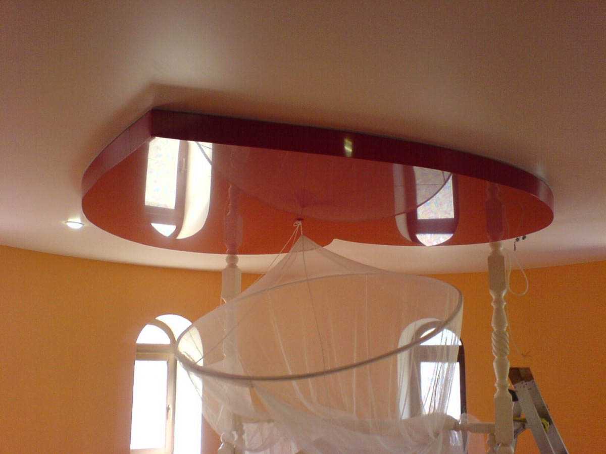 Что касается спальни, то там лучше натягивать матовое полотно или с фактурой “под замшу”. Глянцевые отделочные материалы отлично вписываются в интерьер хай-тек или модерн, для классического интерьера хорошо подойдет матовый подвесной потолок