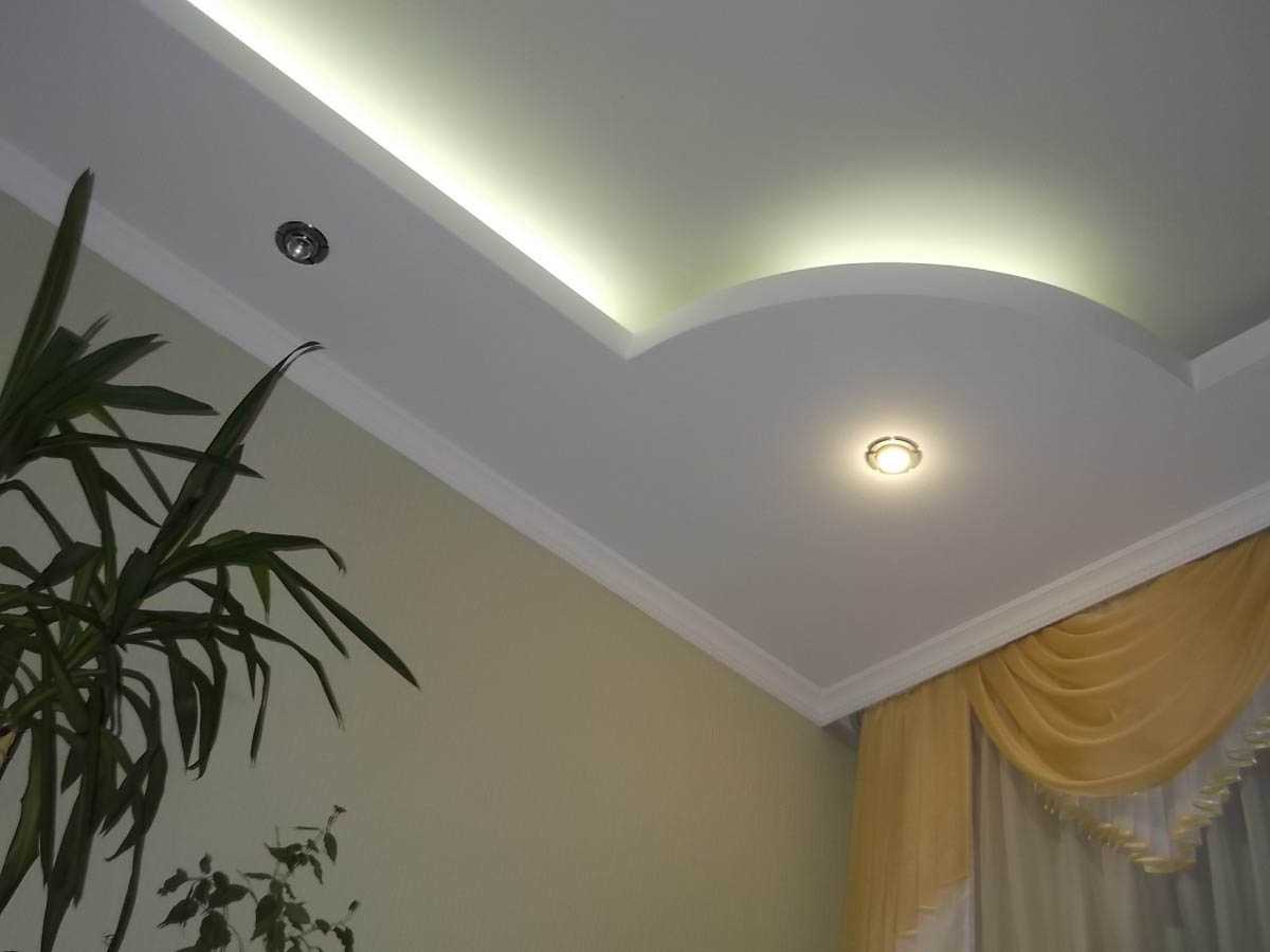 Протянутая по периметру гипсокартона светодиодная нить выполняет не только декоративную функцию, но и помогает придать конструкции необходимый объем. Зачастую невысоким помещениям именно последнего и не хватает — так почему бы не воспользоваться таким выгодным композиционным решением?