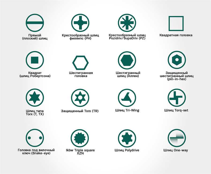 Главными параметрами крепежных деталей против вандалов является тип шлица и материал изготовления. К первым относятся: