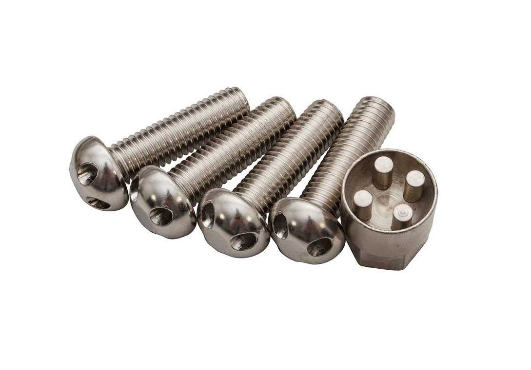 В последнее время такие болты можно увидеть на различном оборудовании, они обеспечивают защиту техники от несанкционированного ремонта. Антивандальные элементы крепления функционируют за счет наличия уникальных шлицов на головках винтов и болтов. Чтобы демонтировать такой метиз, нужен ключ и соответствующие насадки, которые будут совпадать с пазами шлица.