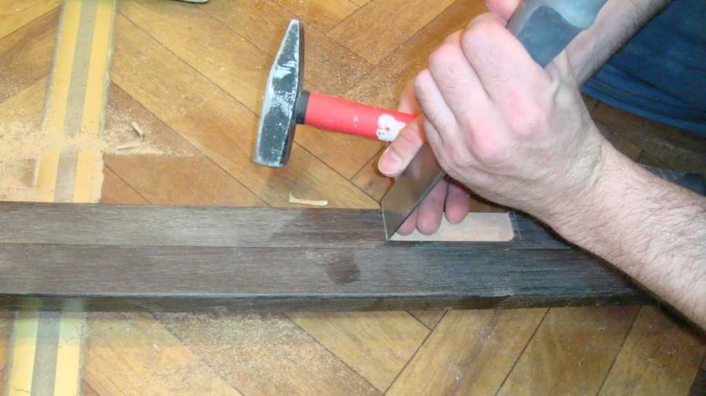 - Вырезаются углубления электрическим оборудованием. Если сделать выборку материала до конца не получилось, подключается к работе стамеска;
