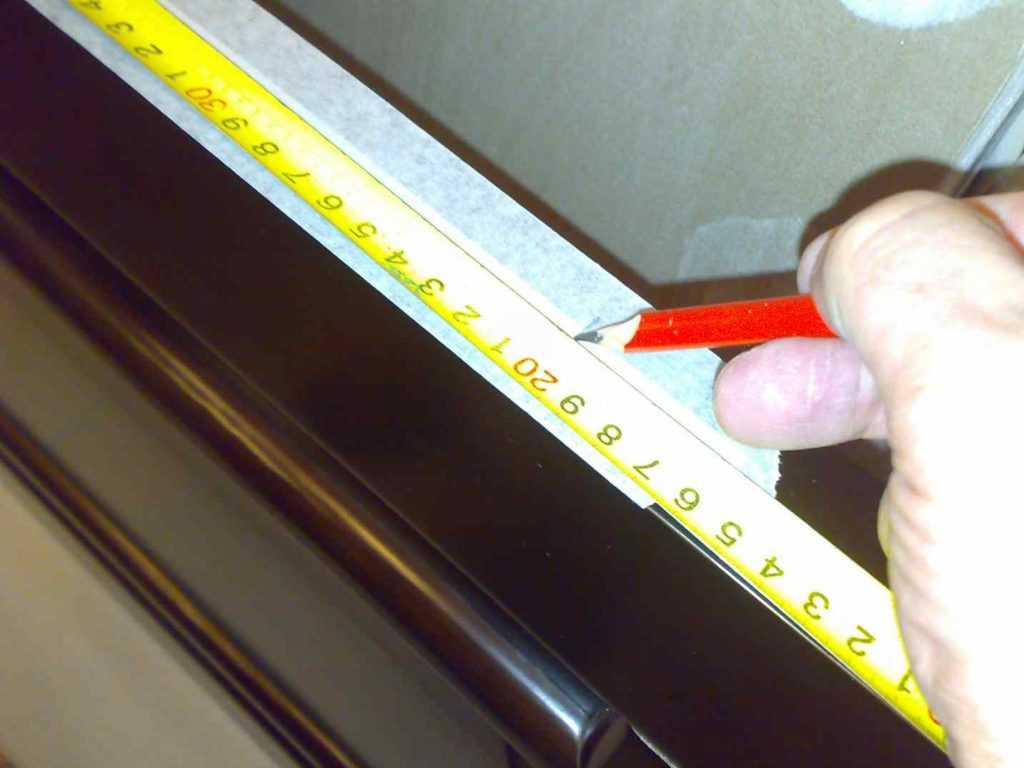 - От нижнего и верхнего края полотна необходимо отступить по 20-25 см и провести простым карандашом линии;