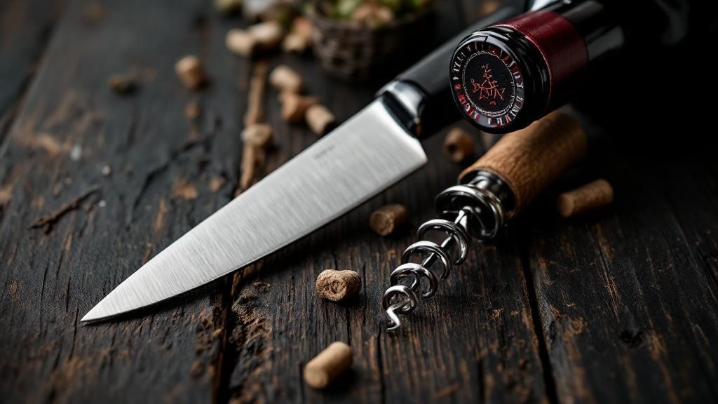 Помимо штопора, удобно иметь фольгорез — небольшой нож или роликовый нарезчик, который аккуратно снимает защитный колпачок с горлышка. Многие ножи сомелье уже включают его в конструкцию, но отдельный фольгорез работает точнее и оставляет чистый срез без лохматых краёв.