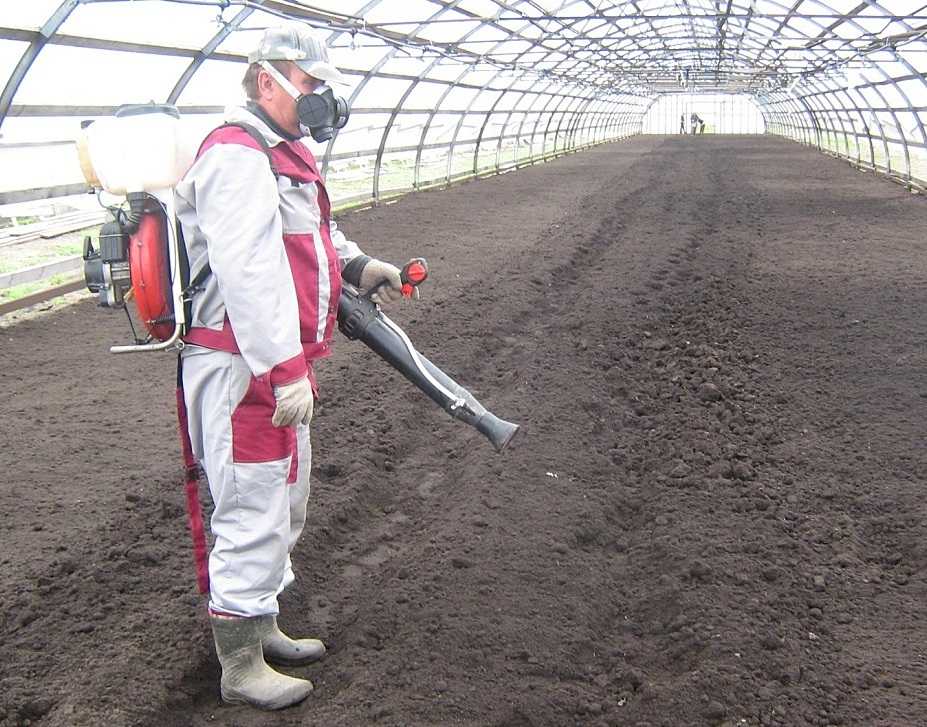 Почву нужно просто обильно полить раствором, а после перекопать. А конструкцию теплицы можно опрыскать либо хорошо протереть тряпкой, смоченной в приготовленном растворе.