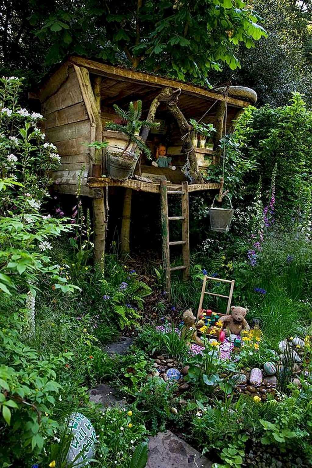 Если вы обладаете навыками строительства, можно соорудить настоящий деревянный детский домик. Детям очень нравится чувствовать себя самостоятельными и обустраивать собственное пространство для жизни и игры.