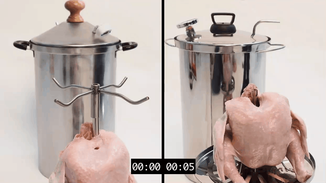 - В некоторых коптильнях насадки для курицы нет — это минус. Без насадки вы не сможете коптить птицу целиком: курица останется сырой внутри, а сверху подгорит. Либо просто сварится, а не закоптится.