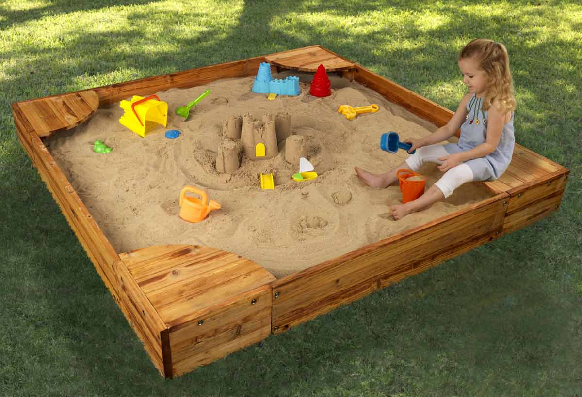 Простая квадратная песочница с широкими бортиками-сиденьями