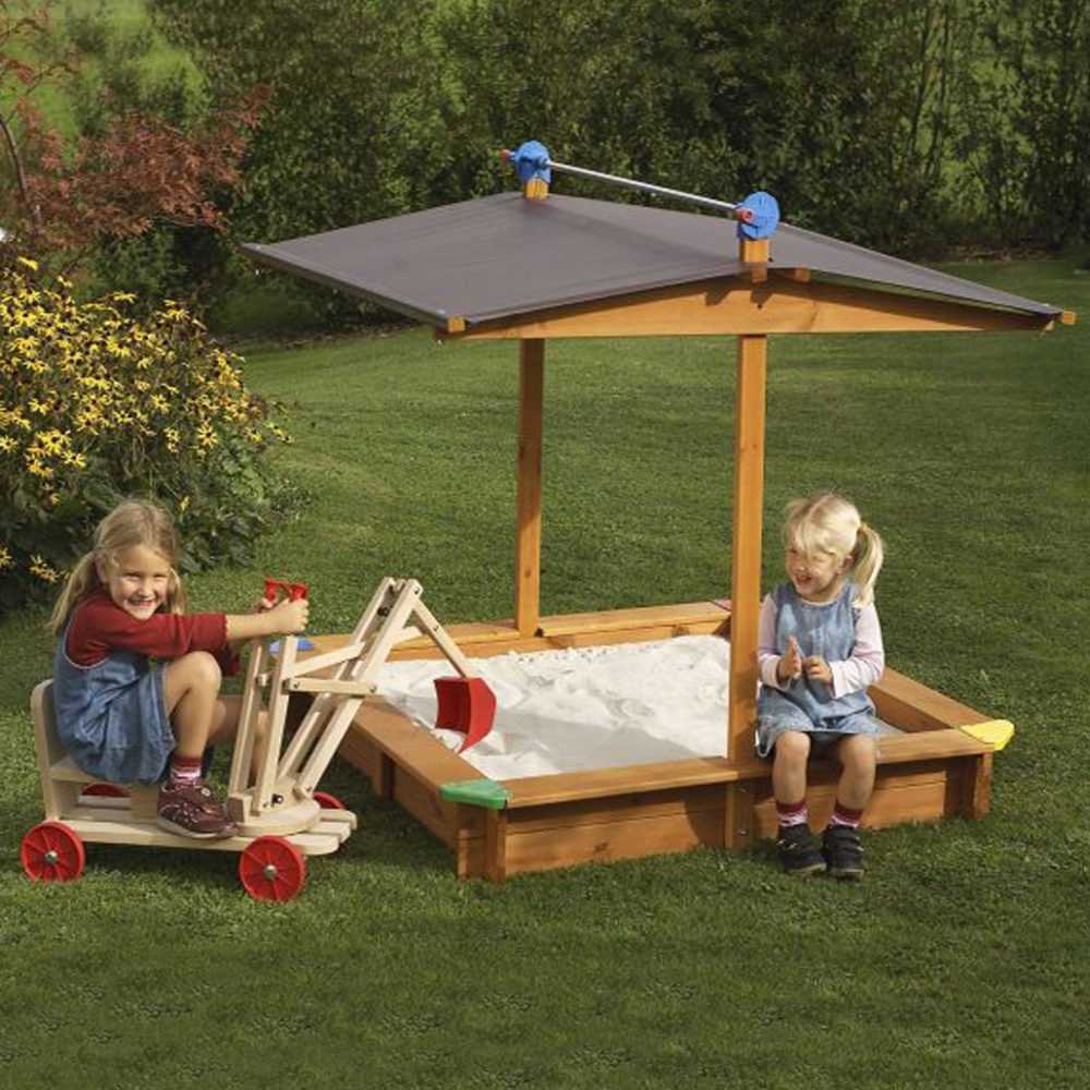Как сделать песочницу с «грибком» небольшим дощатым навесом — смотрите в видео
