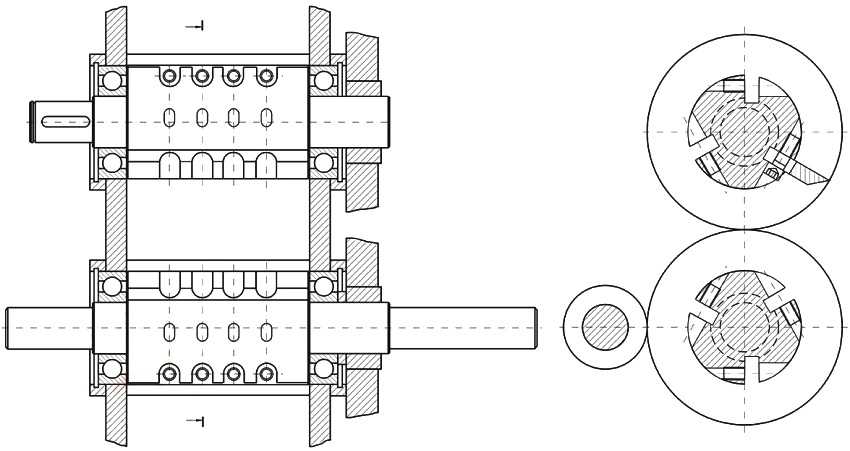 - Двухвалковые конструкции, состоящие из рабочих вальцов фуганочного типа с 4 ножами каждый.