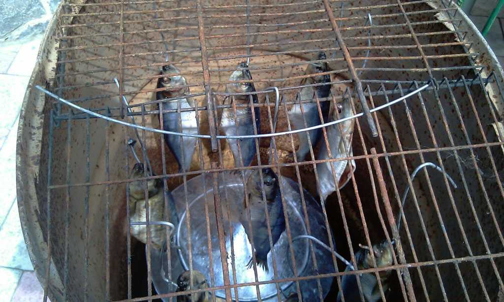 Кроме бочки, можно использовать любой крупный ящик из металла: сгодится и старый холодильник (это и вовсе позволит совместить в одном блоке генератор дыма и сушилку). Изготовить камеру получится, например, из газовой плиты. В конце концов, емкостью для переносной коптильни может послужить обычное металлическое ведро, старая кастрюля, фляги, медицинский бикс или даже старый огнетушитель: внутрь вставляются две решетки, между которыми будет находиться мясо или рыба, а дно засыпается тонким слоем опилок.