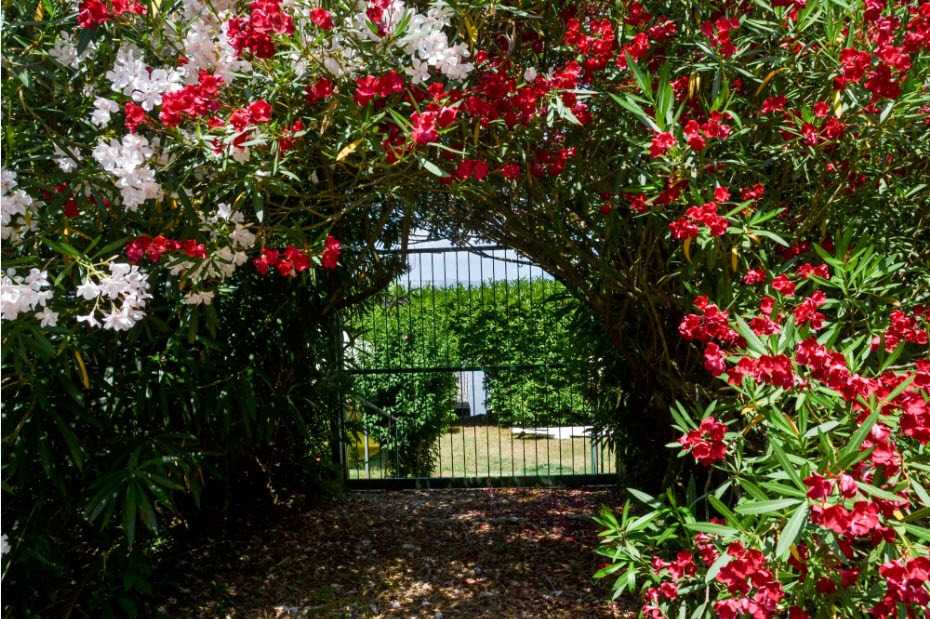 Обязательно от парковочного места должна идти дорожка к дому и остальным зонам отдыха. Её можно отделить при помощи арки с вьющимися растениями, красиво подстриженных кустарников или бордюрных цветов.
