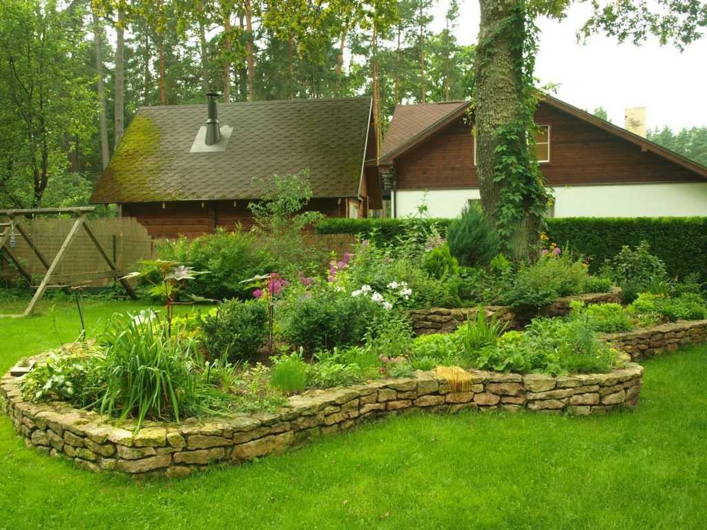 Если же участок наоборот слишком ровный, а хочется привнести в него разнообразия, то создавать искусственные насыпи не рекомендуется – они смотрятся неестественно. Лучше вместо этого обустроить альпийскую горку, цветники и сад.