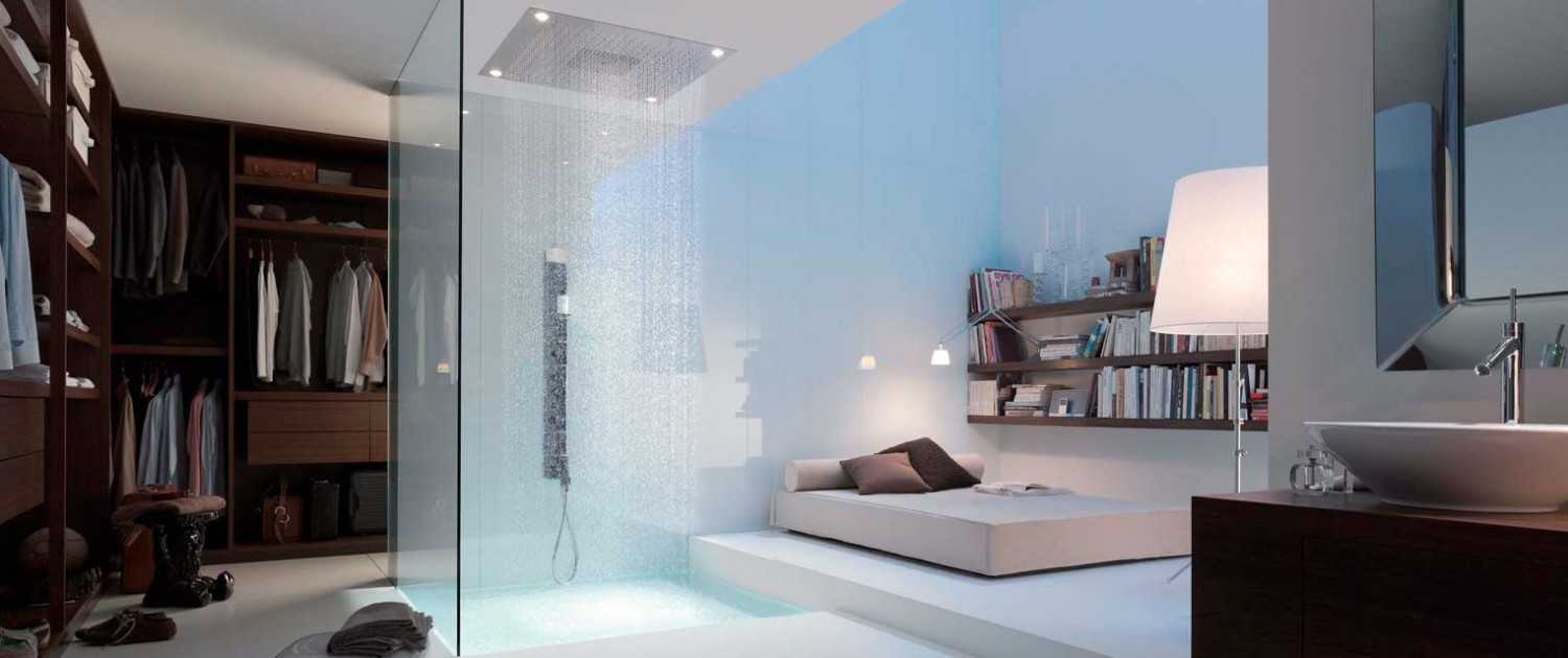 Некоторые душевые насадки чувствительны к температуре и способны менять цвет. Можно придумать собственную идеальную атмосферу, используя дополнительное местное освещение.