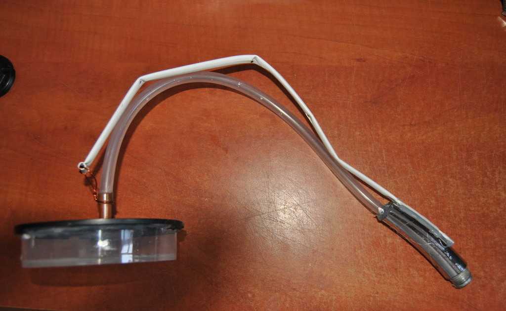 Осталось приделать металлическую трубку или что-то другое (гибкое, но жесткое) для удержания шланги в согнутом положении. Приклейте один конец к насадке, другой – к лейке.