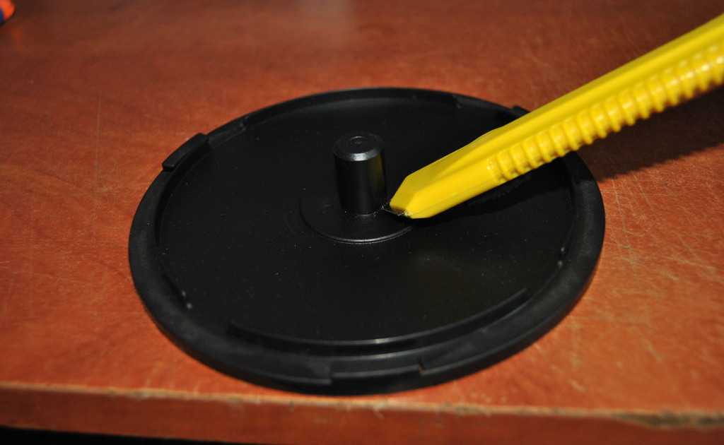 Сначала отрежьте штуковину, на которую надеваются диски. Это легко осуществляется канцелярским ножом. Далее возьмите кусочек трубки, пластиковой или медной, поместите его в получившееся отверстие и герметично приклейте. Рассчитайте так, чтобы длина трубки не превышала высоту коробки для дисков.