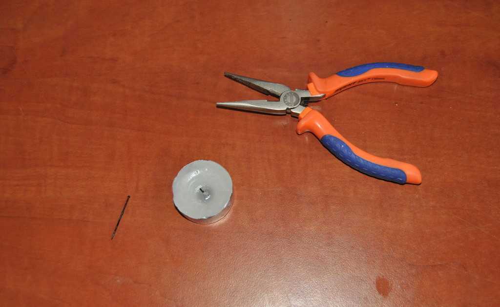 На пламени свечи подогрейте иголку, удерживая ее пассатижами. Потом быстро, пока иголка горячая, вонзайте ее в пластик по сетке, делая нужное количество отверстий.