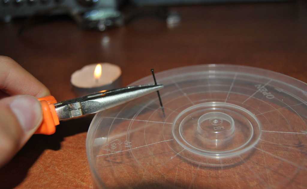 Для основы потребуется коробка для CD-дисков (на 10 штук). Также нужны клеевой пистолет, гибкая трубка, старая насадка для душа, иголка, линейка, циркуль, свеча и некоторые обычные инструменты.