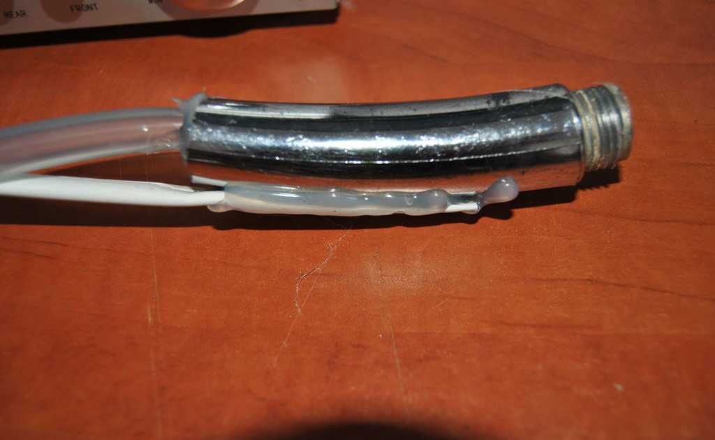 Подойдет трубка диаметром 1 см. Один ее конец приделайте к самодельной лейке. Далее разрежьте старую душевую насадку: использовать надо нижнюю часть, которая потом будет привинчена к старой системе. Склейте между собой трубку и отрезанную часть насадки водонепроницаемым клеем.