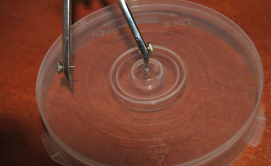 Сетка состоит из кругов и линий. Число кругов следует подбирать по собственному желанию. Пускай линии будут неглубокими: это всего лишь условный ориентир для проделывания отверстий.