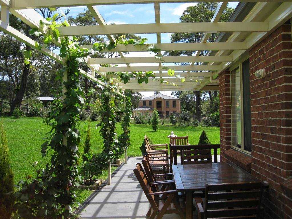 Даже если сооружение устанавливается вплотную к дому, не крепите балки к его стенам. Постепенно виноград начнет виться по стене и разрушать внешнюю штукатурку.