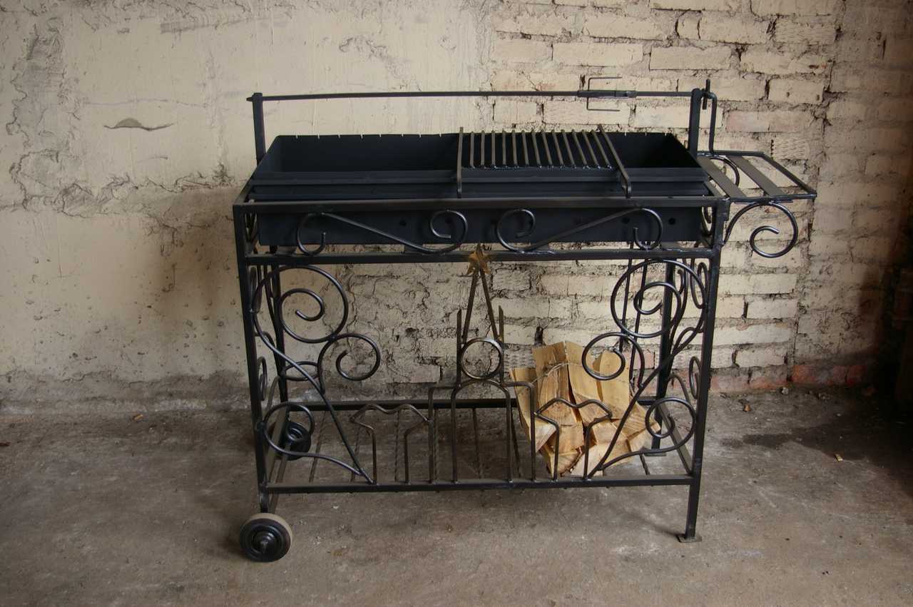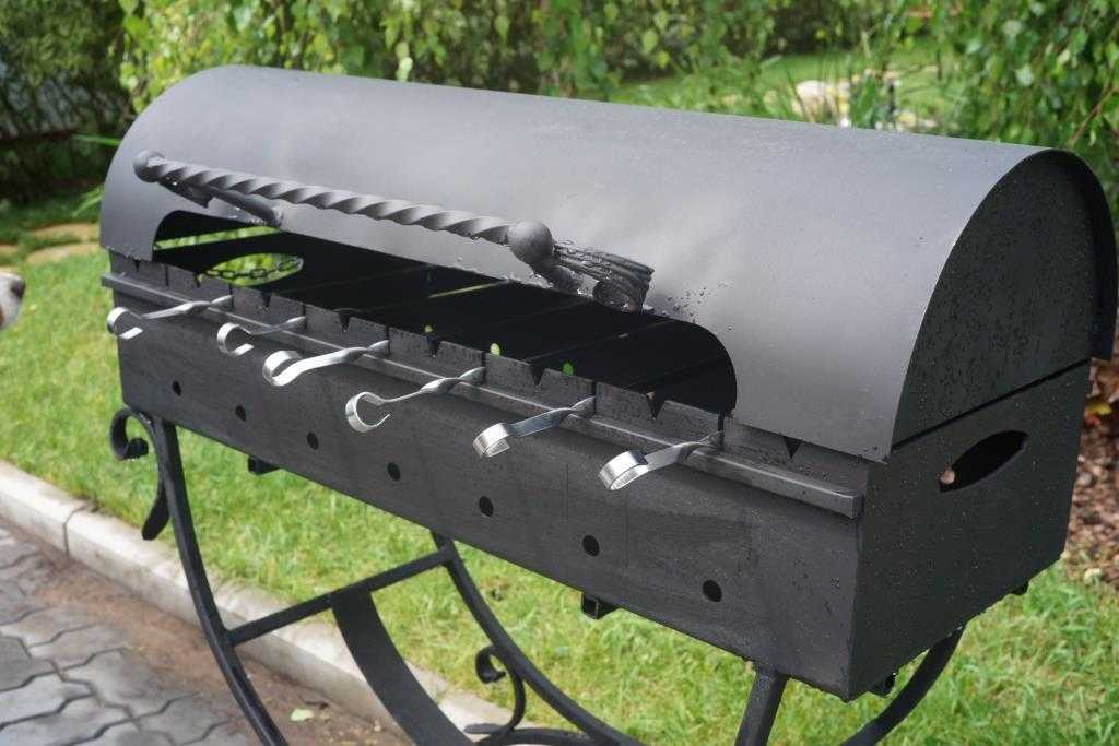 Даже самые простые изобретения можно украсить витиеватой ковкой, которая может служить дополнительными крючками для подвешивания шампуров или сетки.