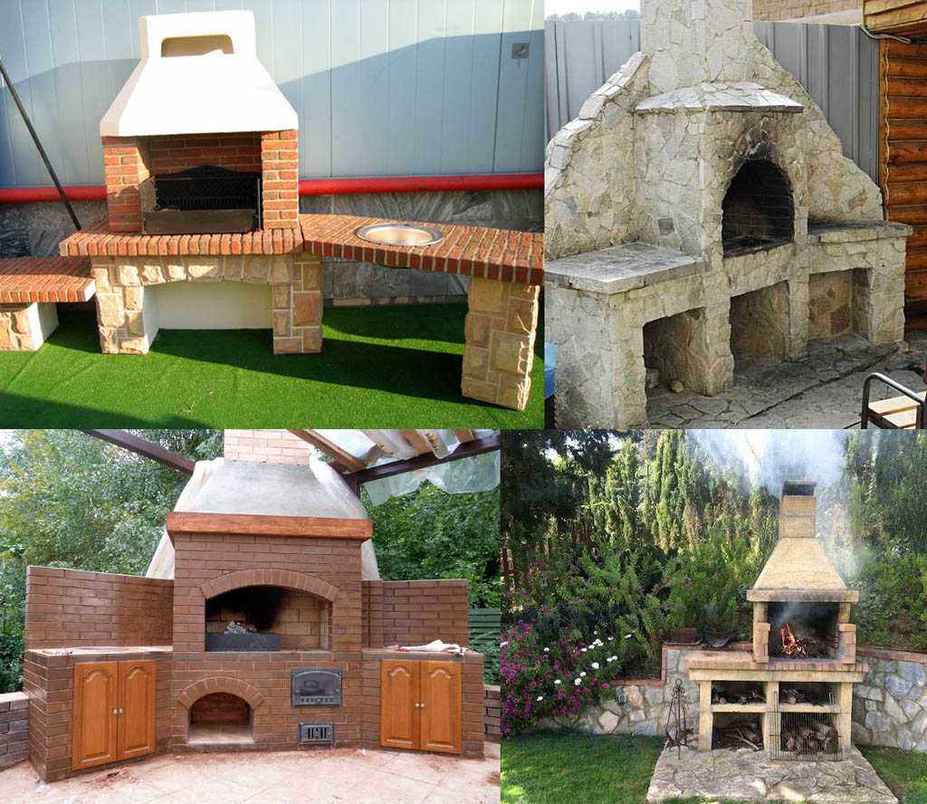 Печи барбекю строятся различного конструктивного и ценового уровня, но обратите внимание на ту, что справа внизу – она предельно проста, а жарит-печет не хуже. Что дымит, не беда, с этим можно справиться, см