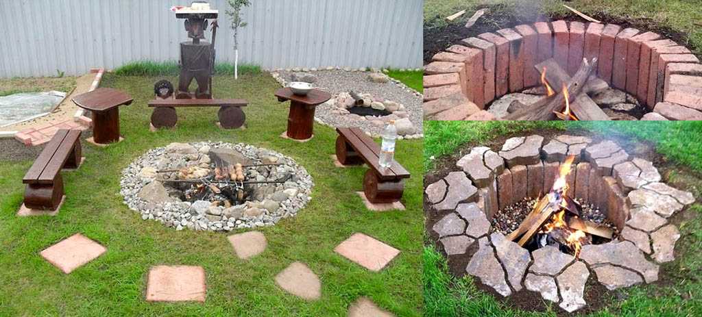 - кострище, или открытый стационарный очаг, обложенный камнем или кирпичом, также можно использовать для пикника, а готовить продукты на нем можно будет с помощью сетки, шампуров или вертела;
