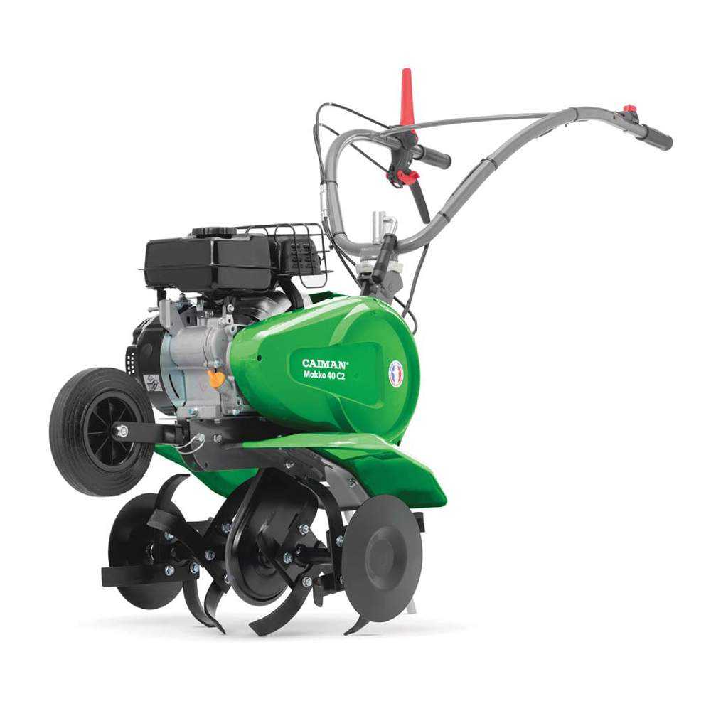 Оборудование имеет массу в снаряженном состоянии 39 кг, применение системы Right Balance снижает нагрузки на руки и позвоночник оператора при обработке почвы. Установка цепного главного редуктора позволила повысить эффективность работы двигателя. За счет высокой частоты вращения фрез (до 160 об/мин) обеспечивается рыхление каменистых и целинных грунтов. На боковых частях почвенных фрез культиватора бензинового типа Caiman Mokko 40 C2 смонтированы защитные диски, предохраняющие стволы деревьев и кустарник от повреждений острыми кромками фрез.